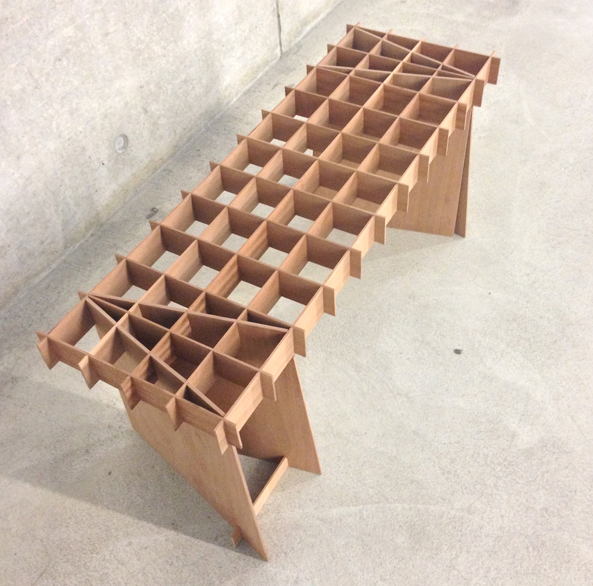The material and focuses on the negative space created by the weave patterns.
